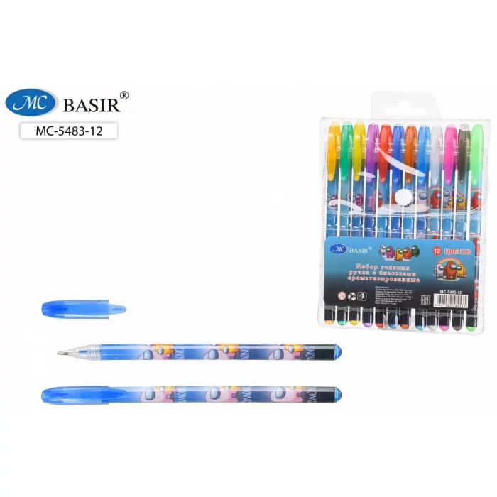 Набор гелевых ручек: "АСТРОНАВТЫ"; ароматизированные, с блёстками, цветной пластиковый корпус рису МС-5483-12