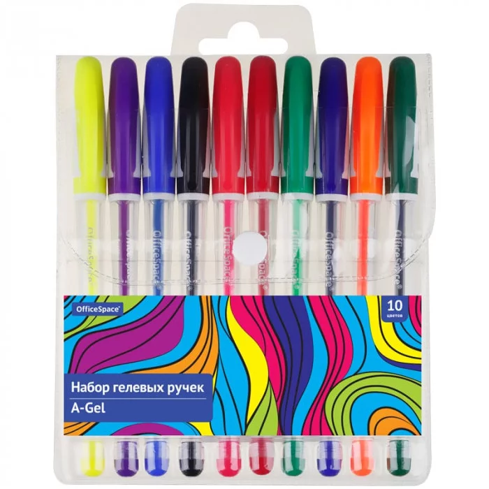 Набор гелевых ручек OfficeSpace "A-Gel" 10цв., 5мм, грип, европодвес 326189