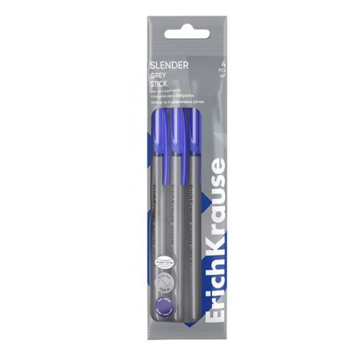 Набор из 4 ручек шариковых ErichKrause Slender Stick Grey 0.7, Super Glide Technology, цвет чернил синий 63087