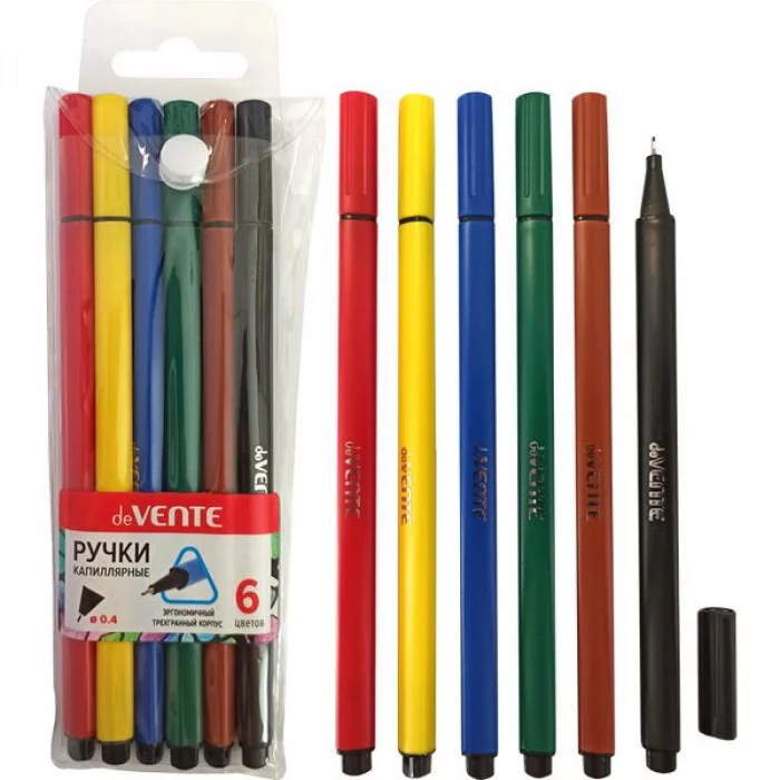 Набор ручек капиллярных «deVENTE. Trio BQ» 06 цветов, d=0,4 мм, с цветным трехгранным корпусом, колпачок БЕЗ КЛИПА, в пластиковой упаковке.