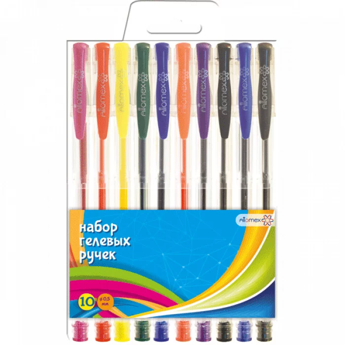 Набор ручек гелевых "Attomex" 10 стандартных цветов, d=0,5 мм, прозрачный корпус с металлическим наконечником, сменный стержень, в пластиковом блистере