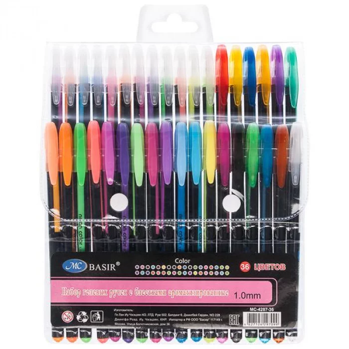Набор ручек гель аром неон блест 36шт 1.0/127мм корпус черный е/п MIRACULOUS МС-4287-36 089742