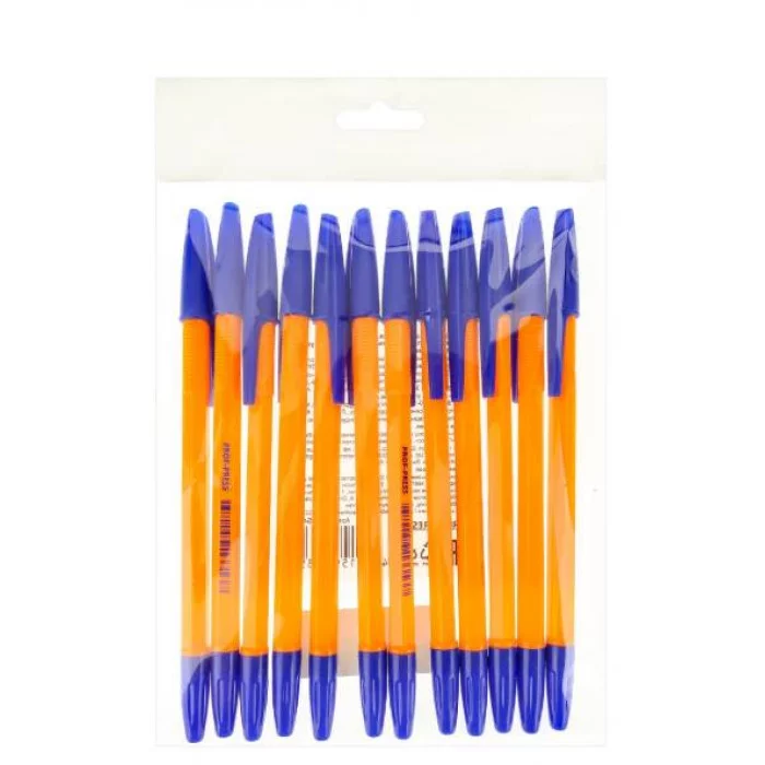 Набор ручек шариковых, "ПРОФИ" 12 шт., СИНИЕ ЧЕРНИЛА(НР-3354) рифл грип, оранжевый корпус, d=0, 7 мм НР-3354