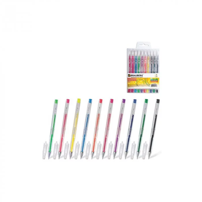 Ручки гелевые BRAUBERG, НАБОР 10шт, Jet, узел 0,7мм, линия 0,5мм, ассорти, 141038