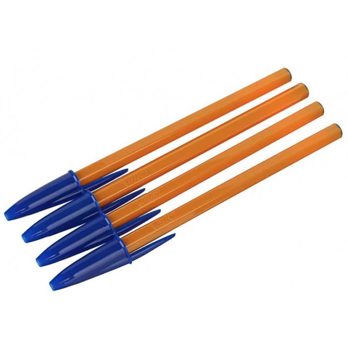 Ручки шариковые BIC "Orange Original", НАБОР 4 шт., СИНИЕ, узел 0,8 мм, линия письма 0,3 мм, пакет, 8308521