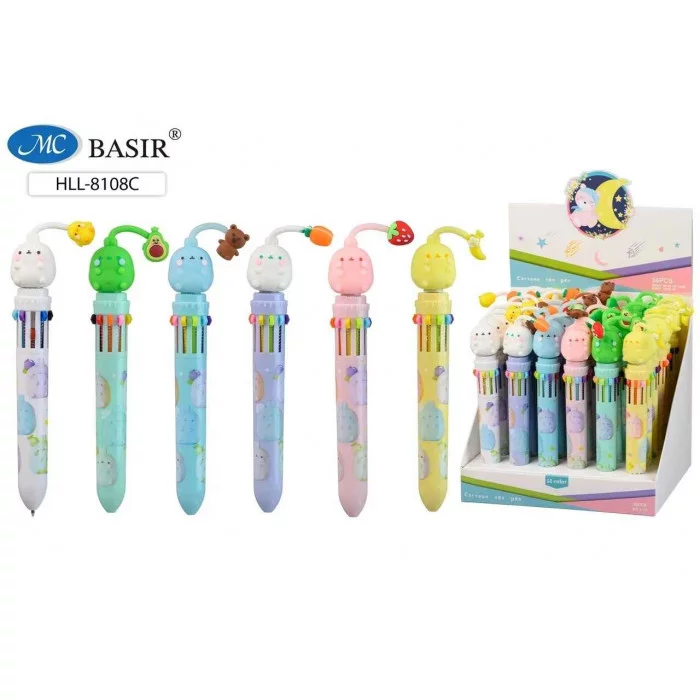 Авторучка 10-ти цветная: детская; 1 шт "КРОЛИК"; цветной корпус с рисунком /ассорти/, прорезиненный након HLL-8108C