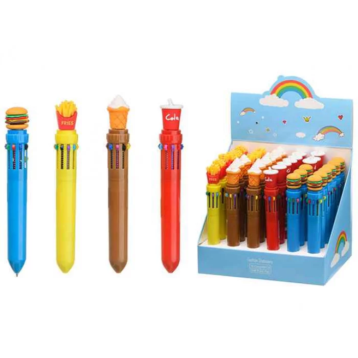 Авторучка 10-ти цветная: детская; 1шт "ФАСТ-ФУД"; цветной корпус /ассорти/, вращающийся прорезиненный н