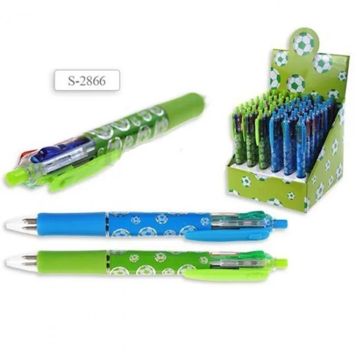 Авторучка S 2866, 4-цветная ФУТБОЛ, 5 мм, 2 дизайна в аасортименте 2866