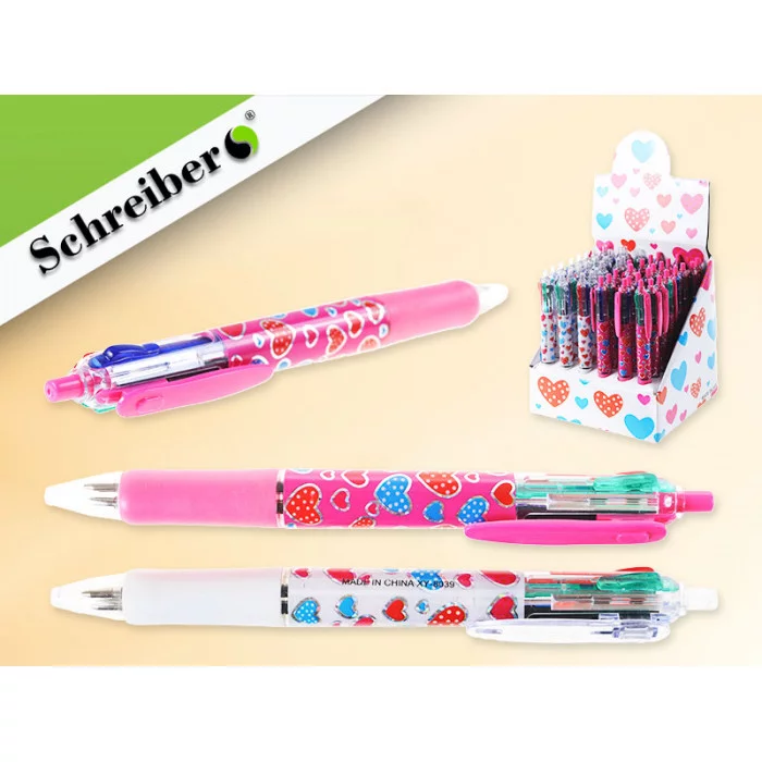 Авторучка S 2868, 4-цветная СЕРДЕЧКИ, 5 мм, 2 дизайна в аасортименте