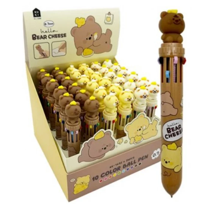 Ручка 10 цв. Фигурная DE-129 "Мишка и сыр" корпус с рисунком, с фигуркой на колпачке, KK-7493 330197