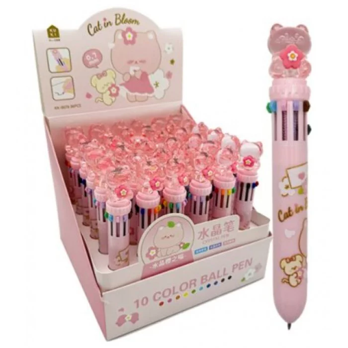 Ручка 10 цв. Фигурная DE-131 "Котик с цветком" корпус с рисунком, с фигуркой на колпачке, KK-8078 330198