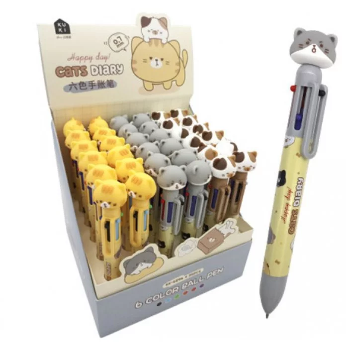 Ручка 6 цв. Фигурная DE-136/DC-99 "Котик" корпус с фигуркой, 7мм, автомат, цвета ассорти, КК-6894 329006