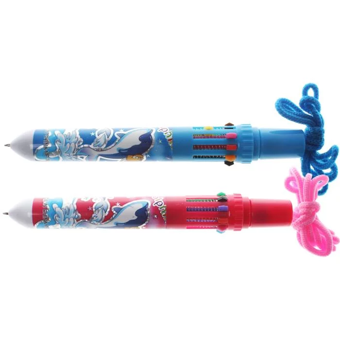 Ручка авт. 10-ти цветная корпус ассорти с рисунком дельфины на шнурке "Darvish"