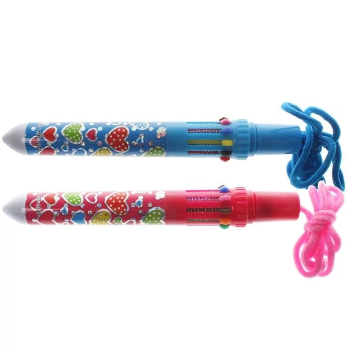 Ручка авт. 10-ти цветная корпус ассорти с рисунком сердечки на шнурке "Darvish"