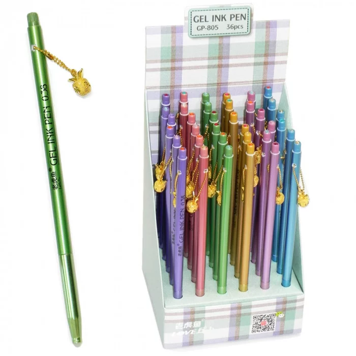 Ручка гелевая синяя, корпус ассорти, подвеска-яблоко GP805A