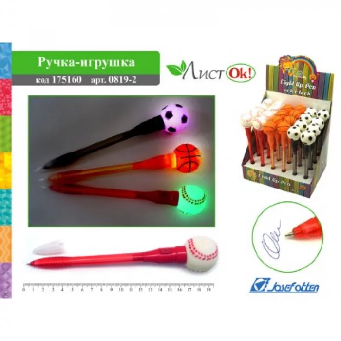Ручка-игрушка 0819-2 "Мяч", с подсветкой, 0,7мм J.Otten 175160