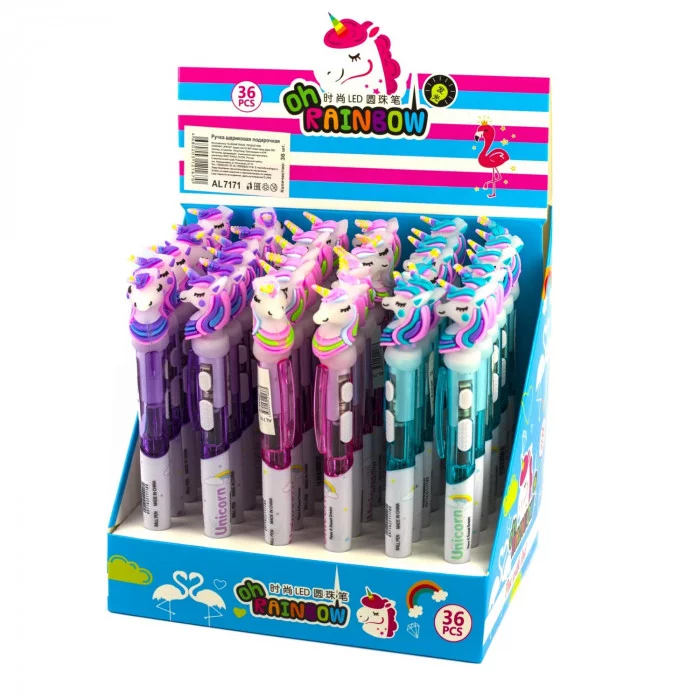 Ручка подарочная шариковая, автоматическая, "Единорог" Alingar, синяя, 7 мм., светящийся, цветной корпус AL7171