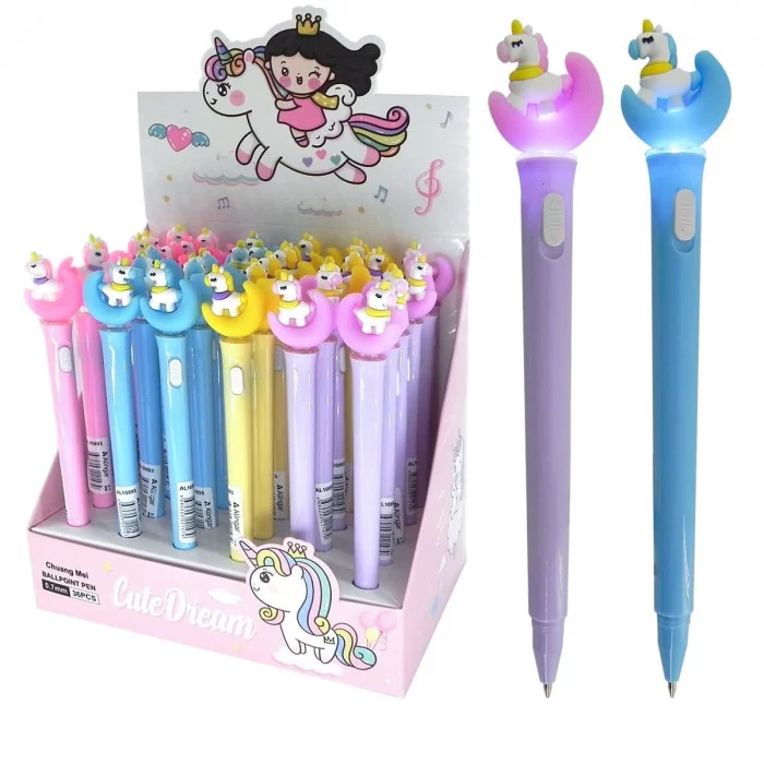 Ручка шариковая Alingar, " Единорог ", 0,7 мм, синяя, с подсветкой, круглый, цветной, пластиковый корпус, картонная упаковка AL10893