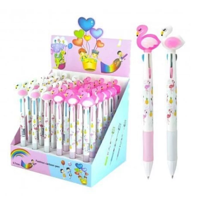 Ручка шариковая Alingar "Фламинго", 7 мм, 3-х цветная (син., черн., красн.), автоматическая, резиновый грип, пластикоый цветной корпус AL10304