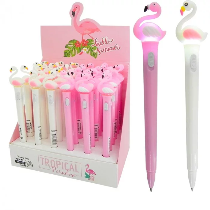 Ручка шариковая Alingar, " Фламинго ", 0,7 мм, синяя, с подсветкой, круглый, цветной, пластиковый корпус, картонная упаковка AL10889