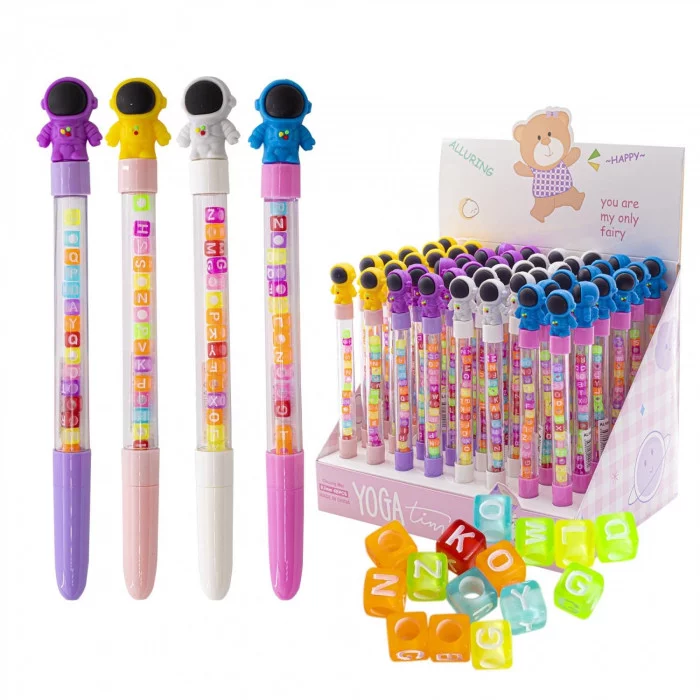 Ручка шариковая Alingar, "Космонавт 2", синяя, 0,7 мм, круглый прозрачный корпус с бусинами, ассорти