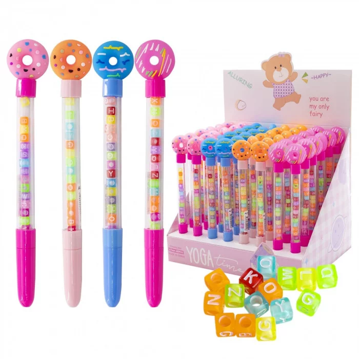 Ручка шариковая Alingar, "Пончик", синяя, 0,7 мм, круглый прозрачный корпус с бусинами, ассорти