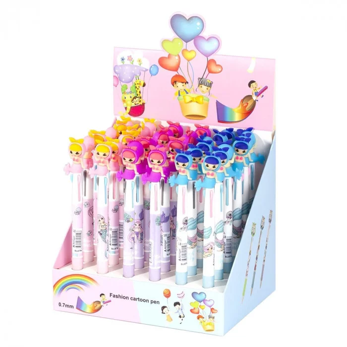 Ручка шариковая Alingar "Русалочка", 7 мм, 3-х цветная (син., черн., красн.), резиновый грип, пластикоый цветной корпус AL8778