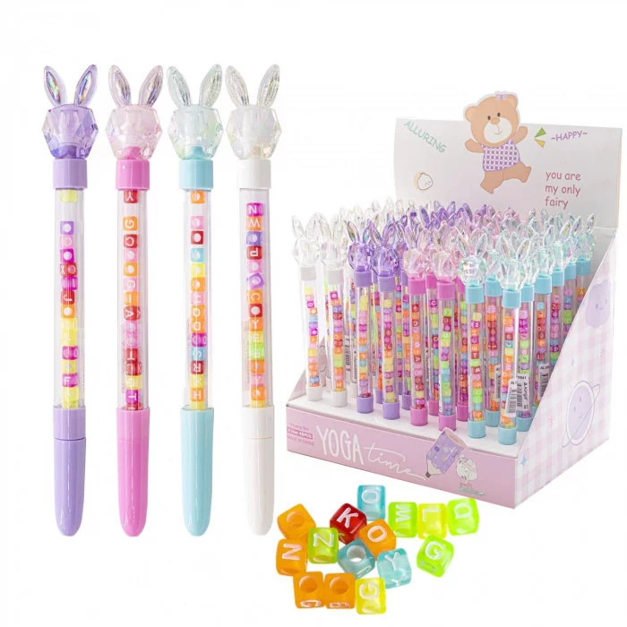 Ручка шариковая Alingar, "Зайчата", синяя, 0,7 мм, круглый прозрачный корпус с бусинами, ассорти