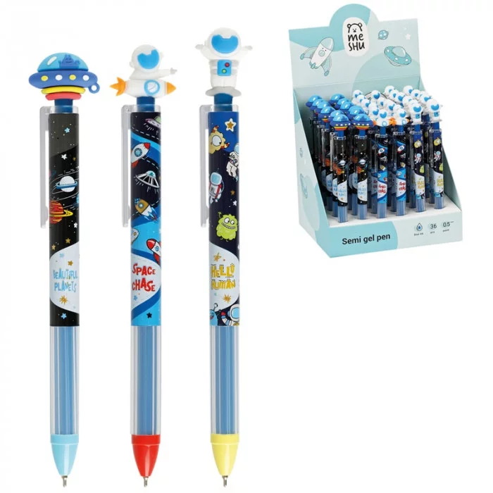 Ручка шариковая автоматическая MESHU "Space Aliens", 1 шт, синяя, 0,5мм, грип, корпус ассорти, с топпером 315685