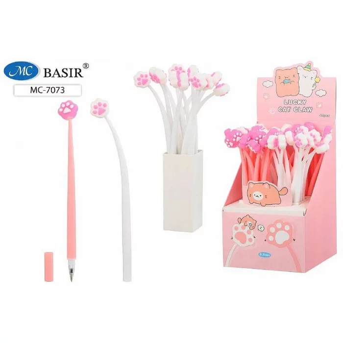 Ручка шариковая: детская; "ЛАПКИ"; гибкий прорезиненный цветной корпус /ассорти/, накончник-лапки МС-7073
