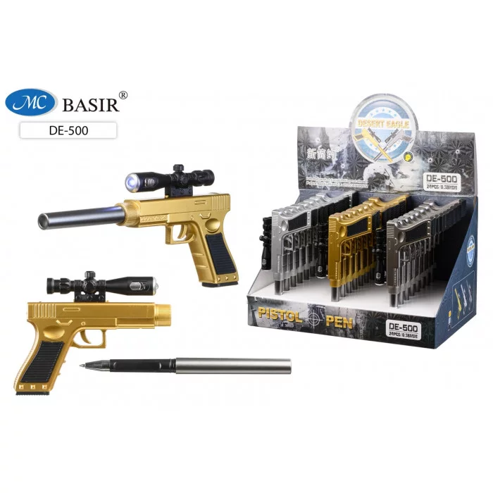 Ручка шариковая с чернилами на масляной основе "ПИСТОЛЕТ"; цветной корпус /ассорти/, колпачок выпол DE-500/648