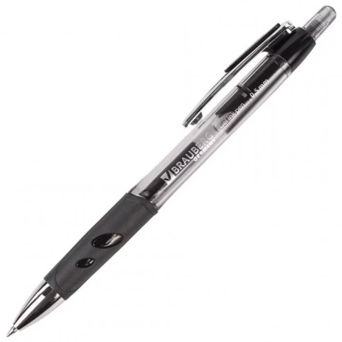 Ручка гелевая автоматическая с грипом BRAUBERG "Officer", ЧЕРНАЯ, корпус тонированный черный, узел 0,5 мм, линия письма 0,35 мм, 141058