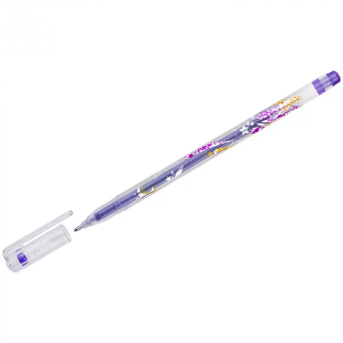 Гелевая фиолетовая ручка Crown Glitter Metal Jell с блестками поможет выделить в тексте заголовки и определения или сделать самый яркий рисунок.