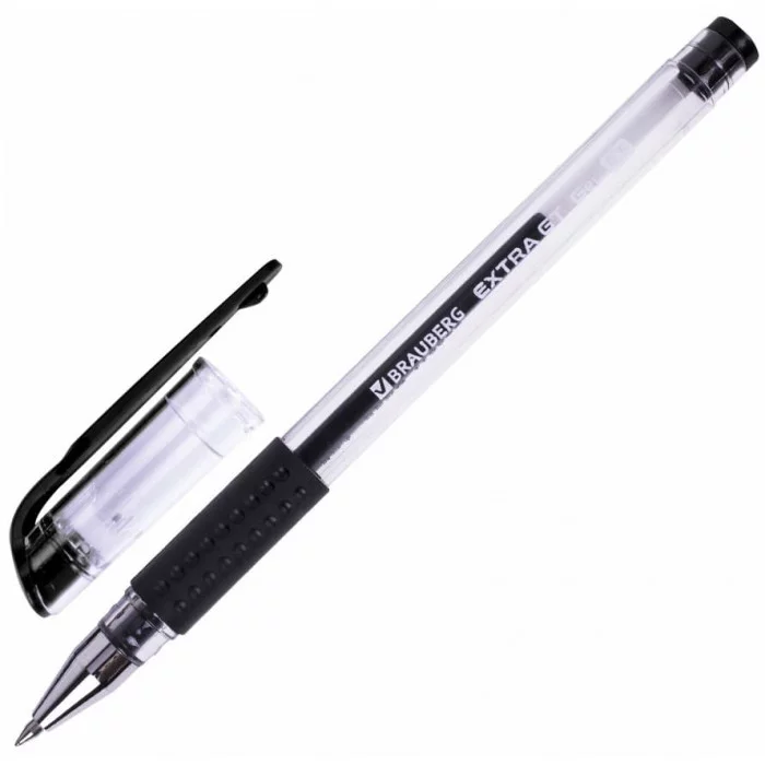 Ручка гелевая с грипом BRAUBERG "EXTRA GT", ЧЕРНАЯ, стандартный узел 0, 5 мм, линия 0, 35 мм, 143917
