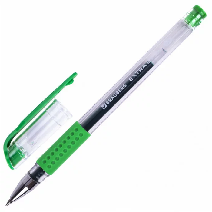 Ручка гелевая с грипом BRAUBERG "EXTRA GT", ЗЕЛЕНАЯ, стандартный узел 0, 5 мм, линия 0, 35 мм, 143922