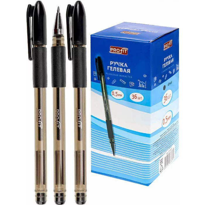 TM"Profit"Ручка гелевая ЧЕРНАЯ (РГ-6835) d=0, 5, с полупрозрач корп и резиновым держ, инд ШК РГ-6835