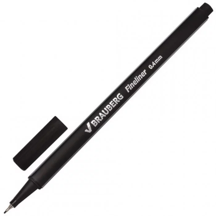 Ручка капиллярная BRAUBERG "Aero", ЧЕРНАЯ, трехгранная, металлический наконечник, линия письма 0, 4 мм, 142252