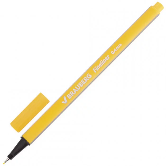 Ручка капиллярная BRAUBERG "Aero", ЖЕЛТАЯ, трехгранная, металлический наконечник, линия письма 0,4 мм, 142248