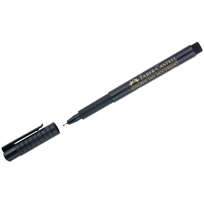 Капиллярная ручка (линер) Fineliner 1511 от немецкого производителя Faber-Castell идеально подходит для письма и черчения. Документарные водостойкие чернила, используемые при производстве ручек, делают надпись и рисунки стойкими и долговечными. Данная ручка идеально подходит для работы с важными документами. Удлиненный пишущий узел в металлической оболочке надежен и очень удобен при работе с линейками и трафаретами. На колпачке имеется пластиковый клип, который позволит прикрепить ручку к ежедневнику или блокноту. Толщина линии составляет 0,4 мм, что позволяет тонко писать. Длина линии письма – до 1200 м (как стандартная шариковая ручка). Ручки Finepen 1511 способны оставаться влажными без колпачка до 10 часов. Цвет чернил - черный. Производство Германия.