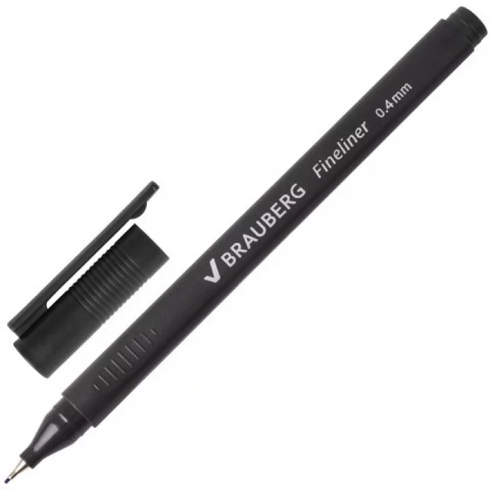 Ручка капиллярная (линер) BRAUBERG "Carbon", ЧЕРНАЯ, металлический наконечник, трехгранная, линия письма 0, 4 мм, 141523