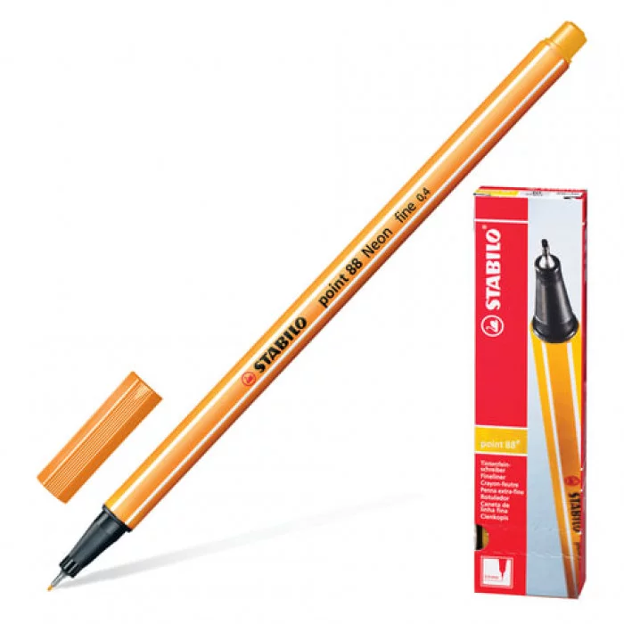 Ручка капиллярная (линер) STABILO "Point 88", НЕОНОВАЯ ОРАНЖЕВАЯ, корпус оранжевый, линия письма 0,4 мм, 88/054