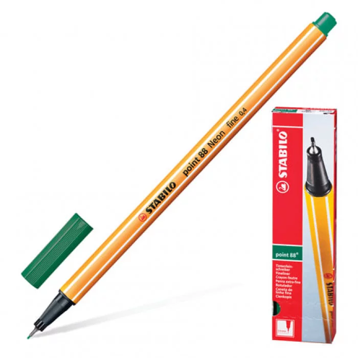 Ручка капиллярная (линер) STABILO "Point 88", ЗЕЛЕНОВАТО-БИРЮЗОВАЯ, корпус оранжевый, линия письма 0, 4 мм, 88/53
