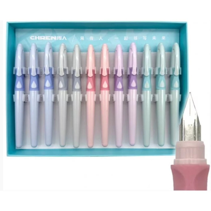 Ручка перьевая DI-24 "Пастель" (син) 0,5мм, круглый корпус, фигурная грип-зона, с чернилами, с клипом, ассорти, №551 332097