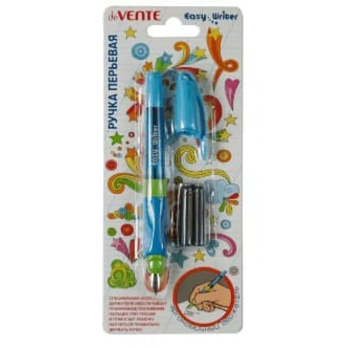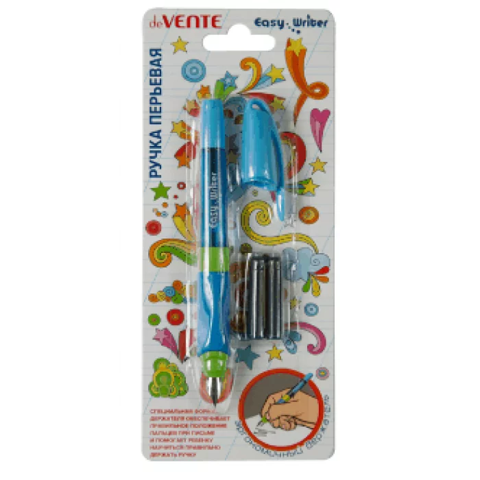 Ручка перьевая "Easy Writer" синяя корпус голубой 2 ампулы блистер е/п DEVENTE 5100901 084298