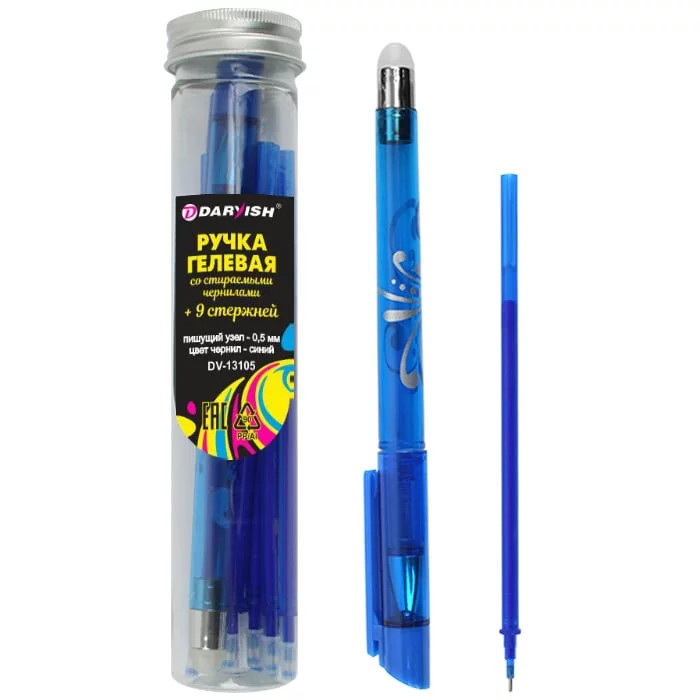 Набор ручка гелевая синяя со стираемыми чернилами + 9 стержней DV-13105