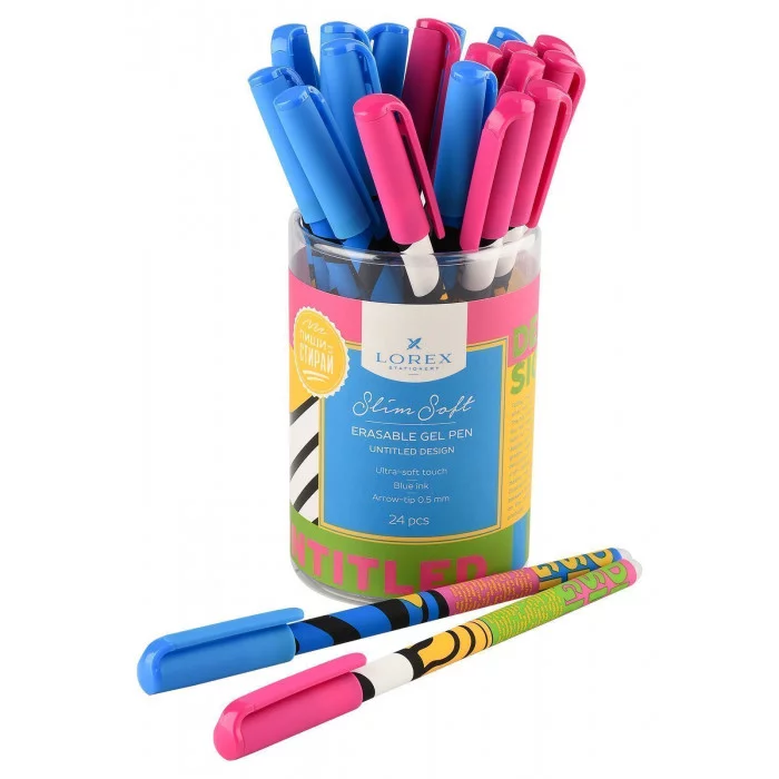Ручка гелевая пиши-стирай, LOREX «UNTITLED DESIGN SLIM SOFT», синий, 0,5мм, пишущий узел пулевидный, прорезиненый корпус, ассорти