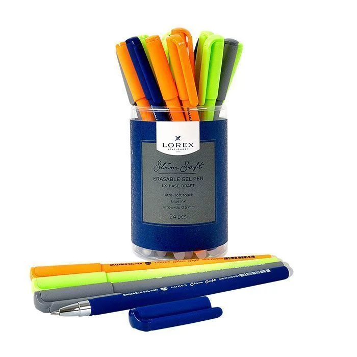 Ручки LOREX со стираемыми чернилами серии Slim Soft 1 шт — это тонкий элегантный корпус изготовленный по технологии Ultra-soft touch. Чернила обесцвечиваются при нагревании. Достаточно потереть надпись специальным резиновым ластиком, расположенным на конце корпуса ручки, и надпись исчезнет. При корректировке надписи бумага остается невредимой, можно писать поверх стертого. Самые яркие и стильные дизайны на корпусе.