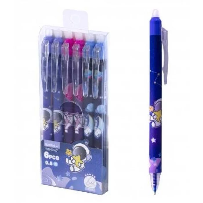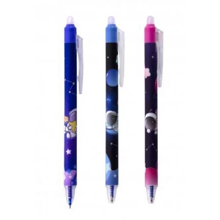 Ручка гелевая пиши-стирай, автоматическая Alingar "Космонавты", 5мм, синяя, игольчатый наконечник, круглый цветной пластиковый корпус, пласт. уп. AL11122
