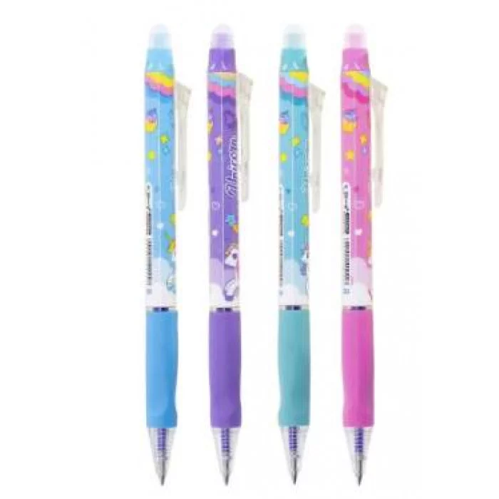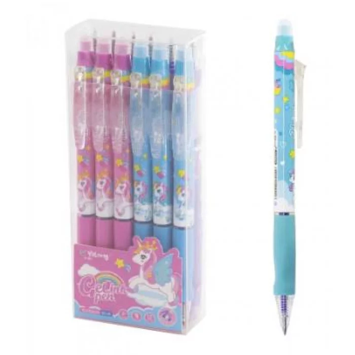 Ручка гелевая пиши-стирай, автоматическая Yalong "Радужное пони", 5 мм, синяя, игольчатый наконечник, резиновый грип, пластиковый корпус, пласт. уп. YL232623