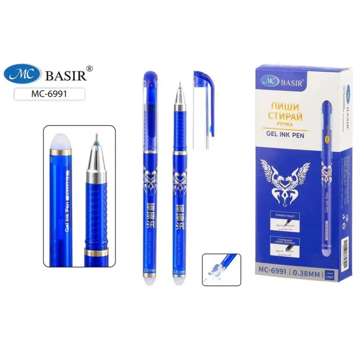 Ручка гелевая пиши-стирай "Classic" синяя 0.5/130мм/иг корпус тонирован рисунок BASIR МС-6991/син/ 083191